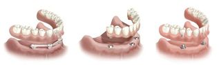 Prothèses amovibles du bas sur 2, 3 ou 4 implants